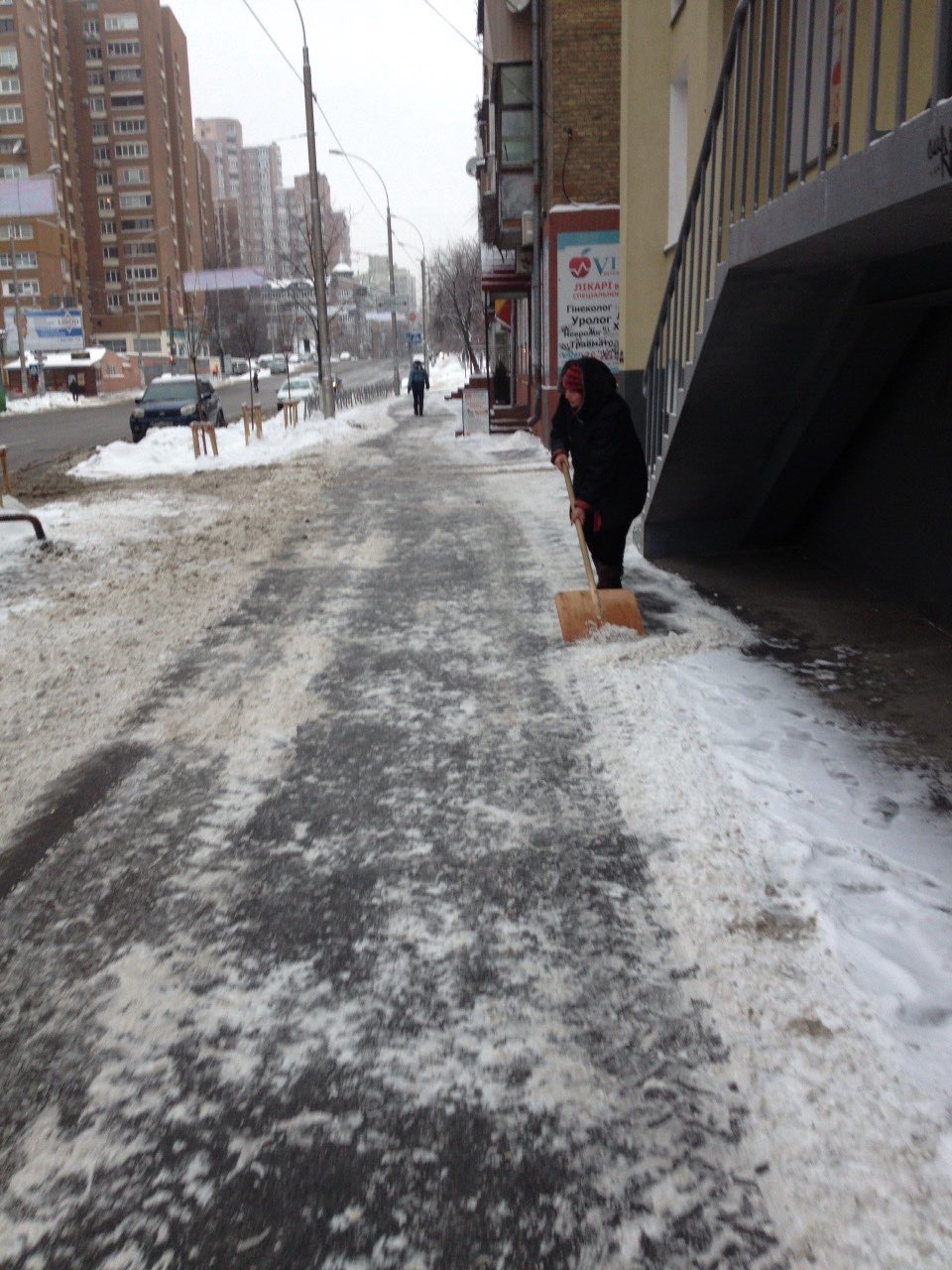 В Голосієво продовжується робота з прибирання доріг і вулиць від снігу