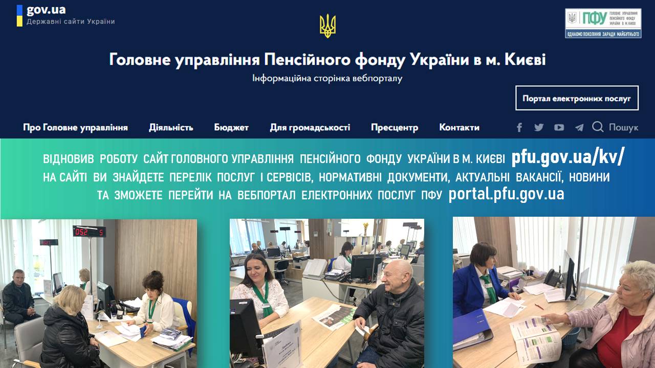 На оновленому сайті Головного управління розміщено інформацію про перелік послуг та сервісів, нормативні документи, актуальні вакансії, новини та активовано перехід на вебпортал електронних послуг ПФУ portal.pfu.gov.ua.