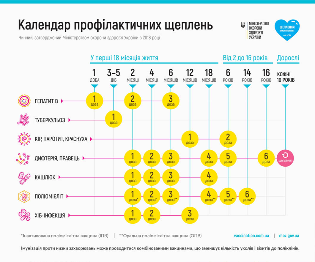 Наразі в Україні обов'язковими залишаються щеплення від десяти серйозних хвороб: