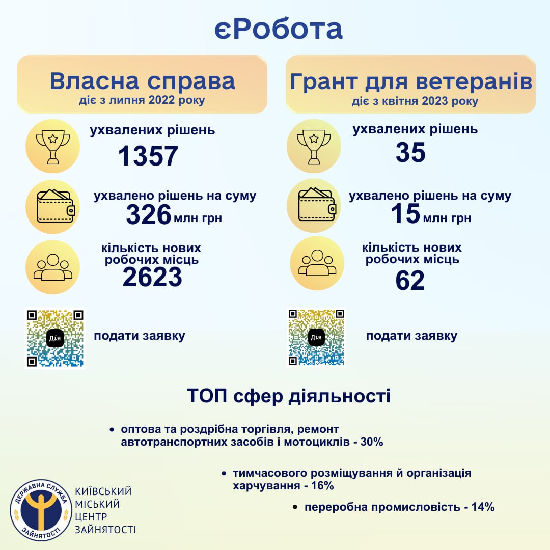 Програма «Власна справа» у рамках урядового проєкту «єРобота» стартувала у липні 2022 року. Вона розрахована на українців, які хочуть отримати кошти для створення чи розвитку свого бізнесу.
